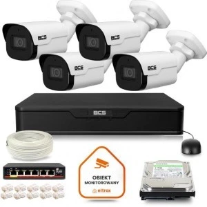 Zestaw monitoringu IP 4x kamera BCS-B-EIP15FR3(2.0) + rejestrator 2TB