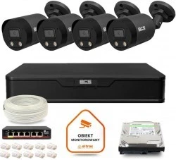 Zestaw monitoringu IP 4x kamera BCS‑P‑TIP28FWR3L2‑Ai2‑G + rejestrator 2TB