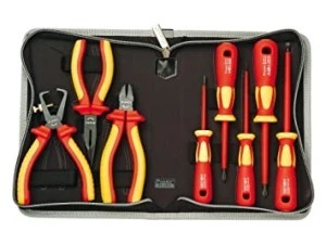 Zestaw narzędzi izolowanych 1000V. Narzędzia posiadają certyfikat IEC/DIN EN 60900 1000V VDE Safety Standards