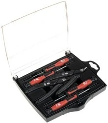 Śrubokręt krzyżakowy PH0 x 50 mm; PH1 x 50 mm Szczelinowe śrubokręt krzyżakowy 2,0 x 50 mm; 3,0 x 50 mm Szczypce dystansowe o długości 130 mm Szczypce tnące Diagonal 115 mm Plastikowy pojemnik do przechowywania. RS ESD, zestaw 6-elementowy narzędzi. Profesjonalny 6-elementowy zestaw narzędzi ESD dostarczany w plastikowym opakowaniu. Przeznaczony do stosowania na wrażliwych elementach elektronicznych poprzez kontrolowane rozpraszanie nagromadzonych ładunków elektrostatycznych.