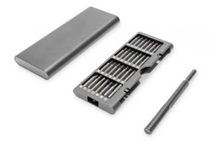 Zestaw narzędzi DIGITUS zawiera duży wybór bitów/końcówek do wkrętarki, a wszystko jest umieszczone w poręcznym aluminiowym pudełku, które jest łatwe w transporcie i umożliwia szybkie wyjmowanie elementów. Bity do wkrętarki są wykonane z wysokiej jakości stali narzędziowej S2, dzięki czemu są wytrzymałe i trwałe. Produkt opracowany specjalnie do naprawy smartfonów, instalacji komponentów komputerowych lub modelarstwa – dzięki niemu użytkownik zawsze dysponuje odpowiednim bitem do wkrętarki.
