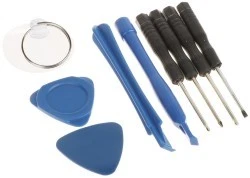 | Zestaw zawiera: | 1 szt. Wkrętak krzyżakowy 1.5 mm , 1 szt. Wkrętak Pentalobe , 1 szt. Wkrętak Torx T4 , 1 szt. Wkrętak płaski 2 mm , 1 szt. Otwieracz do obudowy - szeroki kątowy , 1 szt. Otwieracz do obudowy - wąski płaski , 2 szt. Kostki trójkątne płaskie , 1 szt. Przyssawka |