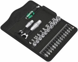 Z rękojeścią, 9 kluczami nasadowymi, 14 grotami i adapterem