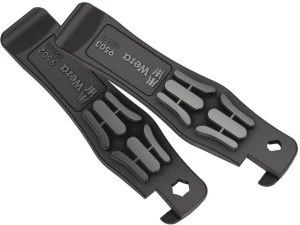 2-częściowy zestaw dźwigni do opon do użytku mobilnego lub stacjonarnego. Dwie dźwignie do opon wykonane są z tworzywa sztucznego wzmocnionego włóknem szklanym: dźwignia do opon 9502 z uchwytem do bitów, który nadaje się również do mocowania wentyli francuskich, oraz dźwignia do opon 9503 z wykrętakiem wentyli. Dzięki dźwigniom do opon z tworzywa sztucznego wzmocnionego włóknem szklanym można bezpiecznie zdjąć opony z obręczy bez uszkodzeń.