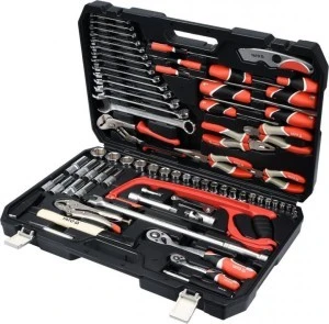 Profesjonalny 79 elementowy zestaw narzędziowy, który został opracowany pod kątem potrzeb wyspecjalizowanych serwisów samochodowych i mechanicznych. Klucze nasadowe, jak i napęd nasadek, zostały wykonane z wytrzymałej, narzędziowej stali chromowo-wanadowej CrV .