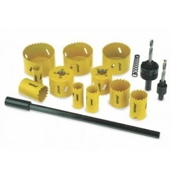 Zestaw 2 szt. uchwytów oraz 11 szt. otwornic bi-metalowych służących do wykonywania otworów w takich materiałach jak: metal, stal nierdzewna, metale nieżelazne, aluminium, drewno, plastik. Otwornice wykonane są z wysokogatunkowej stali szybkotnącej HSS. Odpowiedni kąt natarcia i rozstaw zębów zapewniają skuteczne i szybkie wykonywanie otworów. Podczas pracy otwornicą należy pamiętać o zastosowaniu odpowiedniego chłodziwa oraz dostosowaniu prędkości obrotowej do materiału w którym chcemy wykonać otwór.