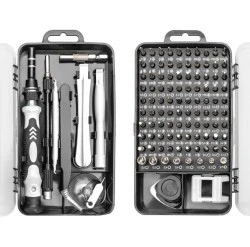 - Zestaw zawiera 115 części, które umożliwiają realizację szerokiego zakresu zadań w mechanice precyzyjnej, od naprawy elektroniki po prace modelarskie