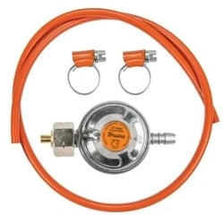 Zestaw przyłączeniowy do gazu Propan-But jest przeznaczony do zasilania urządzeń gazowych, takich jak grille, kuchenki gazowe i palniki. W skład zestawu wchodzi 1-metrowy wąż propan-butan, dwie opaski ślimakowe o średnicy 10-16 mm oraz reduktor gazowy niskiego ciśnienia o wartości 37 mbar i przepływie 1,5 kg/h.