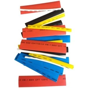 Zestaw rurek termokurczliwych przeznaczonych do izolowania przewodów elektrycznych, izolowania połączeń między przewodami, wzmacniania istniejącej izolacji, szybkiej naprawy i łączenia uszkodzonych przewodów oraz znakowania przewodów.