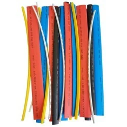 Zestaw rurek termokurczliwych przeznaczonych do izolowania przewodów elektrycznych, izolowania połączeń między przewodami, wzmacniania istniejącej izolacji, szybkiej naprawy i łączenia uszkodzonych przewodów oraz znakowania przewodów.