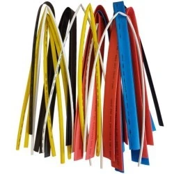 Zestaw rurek termokurczliwych przeznaczonych do izolowania przewodów elektrycznych, izolowania połączeń między przewodami, wzmacniania istniejącej izolacji, szybkiej naprawy i łączenia uszkodzonych przewodów oraz znakowania przewodów.
