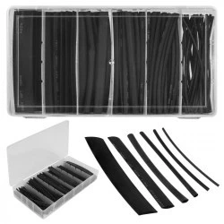 W praktycznym, solidnym opakowaniu z tworzywa sztucznego znajduje się 100 sztuk rurek termokurczliwych w kolorze czarnym. Długość pojedynczej rurki wynosi 10cm. Poniżej prezentujemy poszczególne elementy tego zestawu: