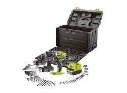 Zestaw Ryobi Wiertarko‑wkrętarka akumulatorowa 18V 2x2.0Ah + akcesoria i pudełko do przechowywania