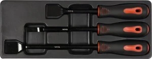 Zestaw skrobaków przeznaczonych do usuwania uszczelek i nawęgleń na głowicach cylindrów silnikowych. Polecany do serwisów samochodowych i mechanicznych.