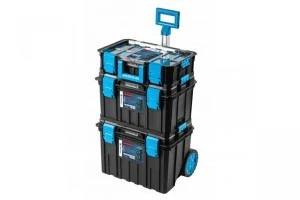 Zestaw skrzyń 4 w 1 to wytrzymałe i wygodne rozwiązanie dla każdego wymagającego użytkownika. W skład zestawu wchodzą skrzynie: HT7G501, HT7G502 I HT7G503. Wykonane są z wysokiej jakości materiałów, odpornych na wszelkiego rodzaju uszkodzenia. Skrzynia zapewnia zwiększoną pyłoszczelność oraz odporność na oddziaływanie wody. Wzmocniona konstrukcja ścian i wytrzymałe zapięcia z ABS zwiększają wytrzymałość i odporność na uszkodzenia. Dodatkowo skrzynia posiada funkcjonalne nosidło wewnątrz oraz duże, pokryte gumą koła ułatwiające transport. Skrzynia 4w1 to idealny produkt do przechowywania i transportu różnego rodzaju przedmiotów. Przeznaczona do profesjonalnego użytkowania. Świetnie sprawdza się w wielu branżach takich jak budownictwo, przemysł, motoryzacja czy logistyka.