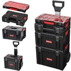 Zestaw skrzynek narzędziowych na kołach renomowanej polskiej firmy Qbrick System odpowiedzialny jest za bezpieczne i wygodne przechowywanie narzędzi oraz akcesoriów. Solidna metalowa oś, duże gumowe koła - to gwarantuje, że produkt poradzi sobie zarówno na równym podłożu, jak i na schodach czy na grząskim gruncie.