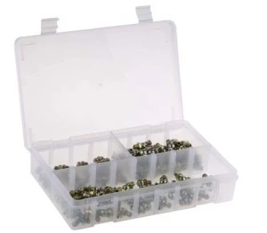 Narzędzia pneumatyczne muszą być zawsze traktowane z ostrożnością i w żadnym wypadku nie mogą być używane do jakichkolwiek celów innych niż ich przeznaczenie. Zestaw RS PRO do smarowania smarowniczek. Przedstawiamy RS PRO zestaw smarowniczek. Idealne do stosowania w układach mechanicznych stosowanych do nakładania smaru za pomocą smarownicy. Charakterystyka i zalety:. Z materiałów stalowych, które są pokryte cynkiem. Dostarczany z osobnym pudełkiem. Łącznie 150 smarowniczek, x50/3.