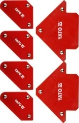 Zestaw 6 kątowników spawalniczych magnetycznych YT-08678 wykonanych z blachy stalowej oraz silnych magnesów ferrytowych. Powierzchnia lakierowana proszkowo. Przeznaczone do czasowego łączenia metalowych elementów podczas spawania, nawiercania, lakierowania.