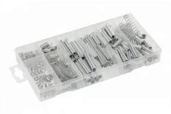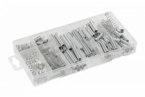 Zestaw stalowych sprężynek o szerokim zastosowaniu w gospodarstwie domowym, warsztacie, motoryzacji i serwisach.