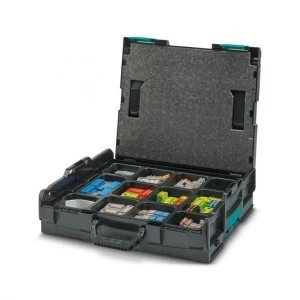 Zestaw startowy PTFIX w praktycznej walizce Sortimo L-BOXX 102. 130 bloków rozdzielczych dla przekroju przewodów 0,14 mm2 ... 10 mm2, 60 adapterów na szynę DIN, 20 kołnierz śrubowy, mostki i oznaczniki