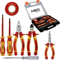 Zestaw narzędzi 1000V NEO zawiera 7 elementów: w tym wkrętaki i szczypce.
