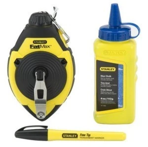 Zestaw 0-47-681 zawiera: sznur traserski FatMax 47-140, kredę traserską oraz poziomnicę sznurkową 42-287