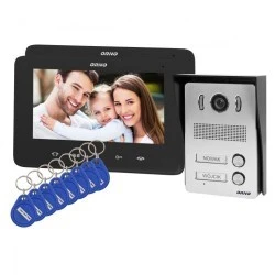 Zestaw wideodomofonowy kolorowy z ultra płaskim monitorem (LCD7")oraz dotykowym panelem monitora,zawierajacym podświetlane przyciski.Parametry monitora(jasnosc i kolor,głośność rozmowy i dzwonka)sa regulowane a do wyboru jest aż 16 dżwieków dzwonka.Panel zewnętrzny z kamerą CMOS nadaje sie do montażu natynkowego.Dodatkowo posiada daszek ochronny w zestawie,miejsce na nazwisko,oświetlenie super jasnymi diodami LED,które zapewnia widzenie w nocy.Zestaw umożliwia otwieranie rygla za pomocą breloków zblizeniowych.Posiada rownież dodatkowa funkcję sterowania bramą oraz funkcję interkomu po zastosowaniu dodatkowego monitora.Urządzenie jest zasilane prądem stałym z zasilacza do gniazda 15V DC lub opcjonalnie z zasilacza na szynę DIN OR-VID-VP-1009ZD.Elektrozaczep o napięciu stałym 12V i poborze prądu nie wiekszym niż 300mA nie wymaga dodatkowego zasilania.