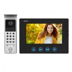 Zestaw video domofonowy zawiera kolorowy,ultra płaski monitor bezsłuchawkowy LCD 7"Zz dodatkowym panelem i podświetlanymi przyciskami.Parametry monitora(głosność dzwonka i rozmowy oraz jasność i kolor obrazu)mozna regulować w płynny sposób.Użytkownicy maja do wyboru aż 16 dżwieków dzwonka.Inne zalety zestawu to:kamery CMOS,daszek ochronny w zestawie,miejsce na nazwisko.Ponadto oświetlenie podczerwienią umozliwia dobre widzenie w nocy.Numeryczna klawiatura na panelu umożliwia otwarcie elektrozaczepu za pomoca kodu,a dodatkowo zestaw ten może rownież sterować otwieraniem bramy.Nadaje się do montażu natynkowego.Kolor czarny.