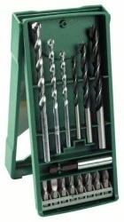 Spis treści: 3 wiertła do muru, O 5/6/8 mm 3 wiertła do drewna, O 4/6/8 mm 8 końcówek wkręcających, L = 25 mm PH 1/2 PZ 1/2 S 4/6 T 20/25 1 uchwyt uniwersalny, magnetyczny