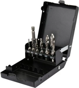 Zestaw zawiera 6 wierteł o rozmiarach M3-M10 (3, 4, 5, 6, 8,10) oraz przedłużkę 60