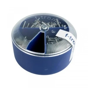 Zestaw z trzema rodzajami wkrętów zamkniętymi w poręcznym organizerze ułatwiającym korzystanie i przechowanie produktu. Pudełko na wkręty z systemem zamknięcia twist-close. Zestaw składa się z trzech różnych rozmiarów wkrętów z łbem krzyżowym.
