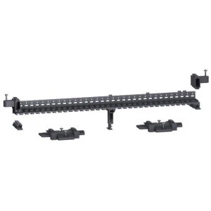 Jest to wspornik listwy bloków zaciskowych do PrismaSeT. Jest kompatybilny z obudową PrismaSeT s lub XS. Dedykowany do obudowy o szerokości 24 moduły. Kolor: czarny (RAL 7016). Całkowite wymiary to (szer.) 450mm x (wys.) 5mm x (gł.) 7mm. Waga wynosi 150g.