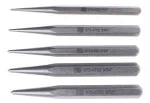 Środkowy zestaw dziurkacza. Jeśli szukasz wytrzymałych, cieplnych narzędzi dziurkujących, w ofercie zestawów dziurkaczy środkowych serii RS znajduje się 5 zestawów punktowych wycięć o różnych rozmiarach. RS wciskarki to wybór dla każdego, kto potrzebuje wytłaczania metalu, plastiku, skóry lub drewna. Każdy cios jest poddawany obróbce termicznej i hartowany w przedziale 45-60 HRC. Każdy zestaw jest dostarczany w pudełku zapewniającym łatwe przechowywanie.