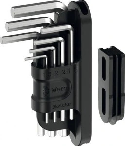 Niezwykle kompaktowy 7-częściowy zestaw kluczy trzpieniowych do śrub z gniazdem sześciokątnym. Profil Hex-Plus, zapewniający większą powierzchnię styku w gnieździe, minimalizuje efekt działania karbu i ryzyko odkształcenia gniazda śruby. Dokładne chromowanie ramion gwarantuje wysoką ochronę przed korozją. Łatwa identyfikacja kluczy trzpieniowych dzięki laserowemu oznaczeniu rozmiaru. 1 adapter 9549 do systemu Tool-Check Modular, dzięki któremu można łączyć różne komponenty systemu Tool-Check Modular. W kompaktowym zestawie systemu Tool-Check Modular.