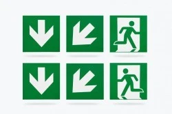 PICTOGRAM SET 0000-30×15 to zestaw znaków bezpieczeństwa przeznaczony do opraw ewakuacyjnych. Służy do jednoznacznego oznaczenia kierunku ewakuacji w instalacjach oświetlenia awaryjnego.