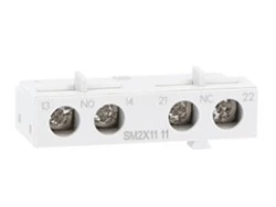 Zestyki pomocnicze SM2X1120 to moduł styków przeznaczony do montażu czołowego w obudowach wyłączników silnikowych SM2R i SM3R. Służy do rozbudowy obwodów sterowania o dwa styki zwierne (2Z) z połączeniem śrubowym.