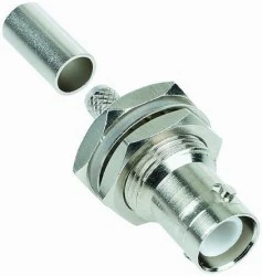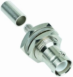 Gniazdo wtykowe BNC do zagniatania odwróconego biegunowości. Dielektryczna i stykowa konfiguracja męska i żeńska są zamieniane na konfigurację standardowego BNC
