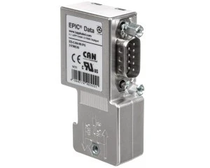 Złącze Sub-D 9-stykowe EPIC ED-CAN-90-PG przeznaczone do transmisji na magistrali CAN-Bus; męskie złącze z przyłączem śrubowym umożliwia połączenia sygnałowe dla programowania i diagnostyki oraz instalację w aplikacjach automatyki i inżynierii maszyn.