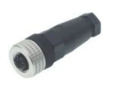 Złącze żeńskie 5-pinowe proste M8. Wtyk kablowy ze stykami pokrytymi cyną, stykiem z PA i obudową Zn Al/Mi, a także O-ring z kauczuku nitrylowego (NBR). Spełnia normy IEC 61076-2-101 i IEC 60947-5-2. Zawiera nośnik styków z klasą palności 94V-2. Odpowiedni do kabli 4 do 6 mm
