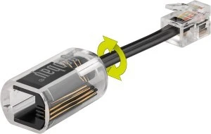 Jednym z artykułów tej firmy jest złącze do słuchawki telefonicznej. Złącze to ma charakter obrotowy. Wyposażono je w profilowany przepust przeciwzgięciowy. Produkt ten wykonano w kolorze czarnym. Długość kabla wynosi w tym przypadku 0,03 m. Produkt ten posiada wtyk prosty oraz gniazdo proste.