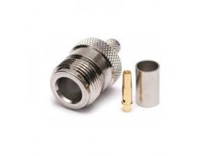 Złącze HF typu N żeńskie do kabli H1000, żyła środkowa i kabel przeznaczone są do zaciskania.