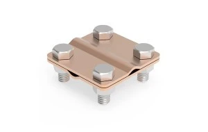 Służy do krzyżowego połączenia drutu odgromowego. Złącze składa się z dwóch części o grubości 2 mm, skręcanych za pomocą 4 śrub M8. Wersja 90100101 nadaje się do łączenia drutu o średnicy do 8 mm, a wersja 90100201 do drutu o średnicy 10 mm.