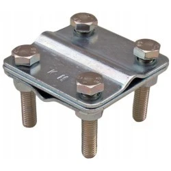 Złącze krzyżowe odgromowe 2P masztu KM GROM służy do pewnego podłączenia drutu odgromowego fi 8 i 10 do masztu, z wykorzystaniem czterech śrub M8x40.