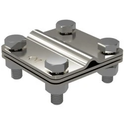 Złącze krzyżowe odgromowe KM GROM to uniwersalny element osprzętu odgromowego przeznaczony do solidnego łączenia drutu odgromowego fi 8 i 10 mm lub bednarki do 30 mm, przy użyciu czterech śrub M8.