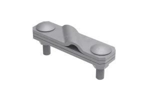 Służy do wykonywania krzyżowych połączeń ziemnych pręta uziomowego lub drutu odgromowego z bednarką. Złącze składa się z 2 lub 3 elementów, skręconych ze sobą za pomocą dwóch śrub M10.