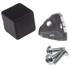 3-stykowe złącze kątowe i nasadki. Trójdrożne kąty połączenia umożliwiają podłączenie maksymalnie trzech profili aluminiowych pod kątem prostym. Istnieją różne rodzaje pokryw, które mogą być stosowane przy kącie połączenia. Te kąty połączenia i zaślepki są również zgodne z zakresem profili.