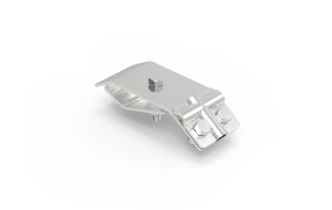 Służy do mocowania drutu odgromowego do każdego rodzaju rynny. Złącze składa się z dwóch części o grubości 2 mm, skręconych ze sobą za pomocą śruby M6. Wersja 90300201 ma dodatkowo nasadkę umożliwiającą prowadzenie drutu wzdłuż rynny.