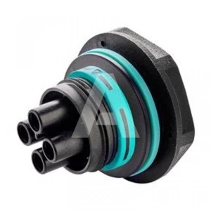 Złącze TEEPLUG mini THB.387.F5A to gniazdo 5-pinowe na panel, przeznaczone dla przewodów o przekroju od 0,5 do 2,5 mm². Urządzenie zapewnia prąd znamionowy 17,5 A przy napięciu znamionowym 450 V, oferując stopień ochrony IP68.