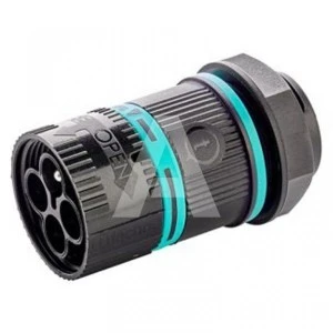 Złącze TEEPLUG mini THB.387.N3A to 3-pinowa wtyczka na panel dla przewodów o przekroju od 0,5 do 2,5 mm². Zapewnia prąd znamionowy 17,5 A i napięcie znamionowe 450 V, oferując ochronę IP68.