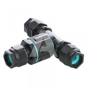 Złącze TEETUBE "T" model THB.390.F3A.1 jest przystosowane do przewodów o przekroju od 0,5 do 1,5 mm². Zapewnia prąd znamionowy 32 A przy napięciu znamionowym 450 V. Produkt oferuje ochronę IP68, co gwarantuje jego wodoodporność i pyłoszczelność.